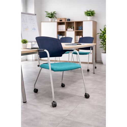 Cadeira recondicionada – com rodízios – preto e turquesa