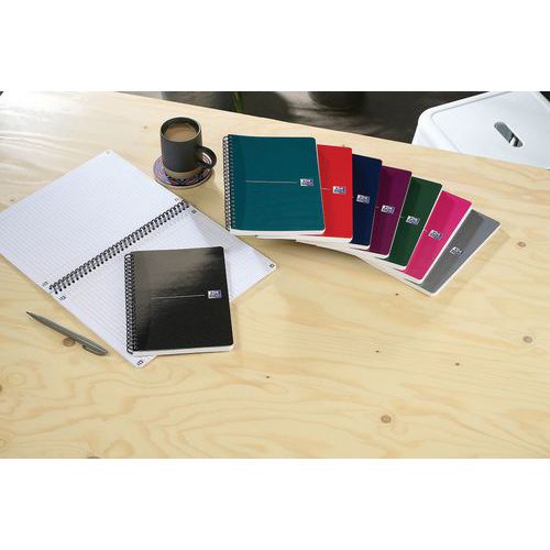 Caderno A5 Oxford Office Essentials com pautado de 7 mm, 180 páginas com encadernação integral e capa em cartão colorido. Formato A5: 14,8x21 cm (LxA). Pautado com espaçamento de 7 mm, cabeçalho e margem dupla. Capa flexível opaca em cartão peliculado. Encadernação integral preta. 180 páginas de qualidade Optik Paper, um papel acetinado de 90 g extrabranco. Régua marcadora de páginas amovível incluída com o caderno. Folha de guarda impressa com zona de escrita no início do caderno. Caderno com certificação Ecolabel EU (fabrico do papel com reduzido impacto ambiental﴿ ﴾gestão sustentável das florestas﴿. Fabrico em França. Cores sortidas: azul-original, verde-floresta, azul-lavanda, vermelho, chocolate e preto.
