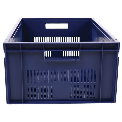 Caixa de norma europeia com grande estabilidade para empilhamento. Boa ventilação garantida com as paredes gradeadas. Facilidade de manuseamento graças às grandes pegas abertas. Resistência aos óleos, às gorduras e a numerosos produtos químicos. Fabricada em polipropileno.