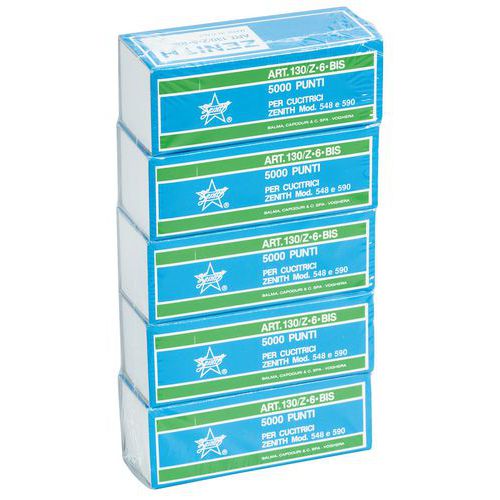 | Nome do artigo | Caixa com 5000 agrafos 6/6 Zenith, Tipo de agrafo: 6/6, N.º de agrafos/caixa: 5000 |