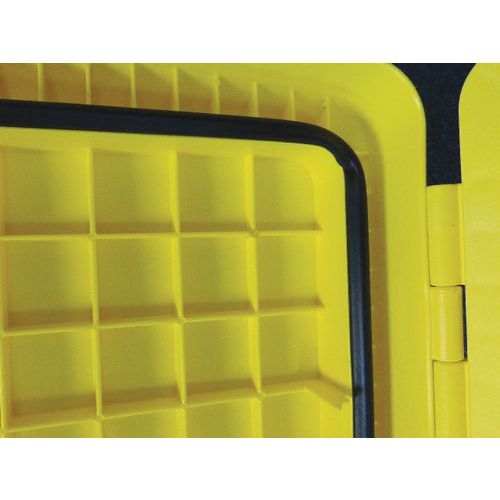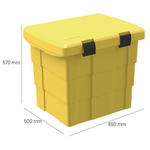 | Nome do artigo | Caixa com tampa bloqueável, Capacidade: 108 L, Comp.: 650 mm, Profundidade: 500 mm, Altura: 570 mm |
