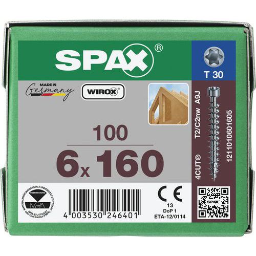 Caixa de 100 parafusos de cabeça cilíndrica para madeira TX Ø 6 mm - Spax