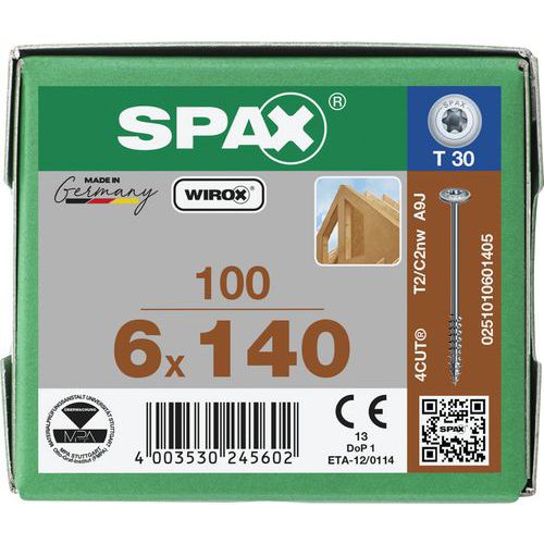 Caixa de 100 parafusos de cabeça em disco para madeira TX Ø 6 mm- Spax