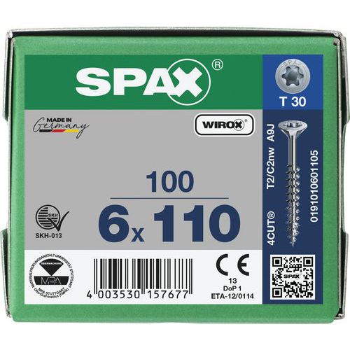 Caixa de 100 parafusos universais de cabeça escareada T-Star Plus TX Ø - Spax