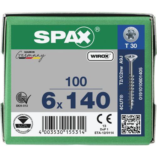 Caixa de 100 parafusos universais de cabeça escareada T-Star Plus TX Ø - Spax