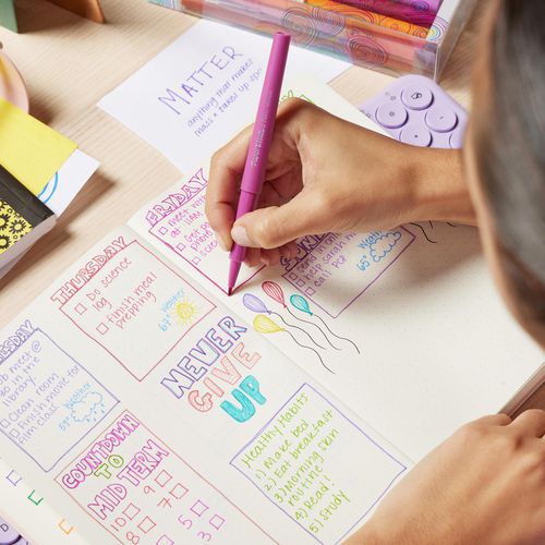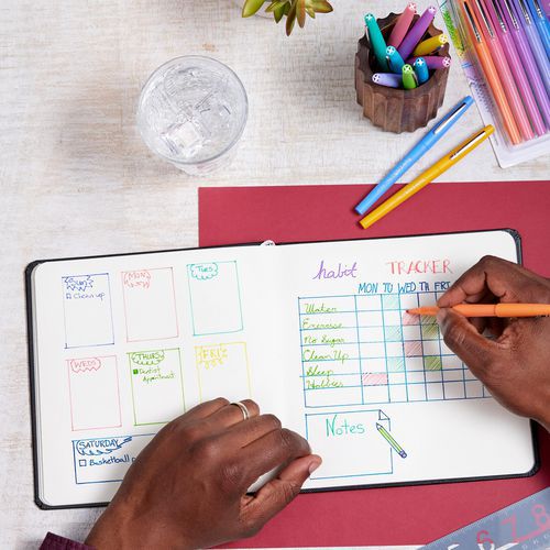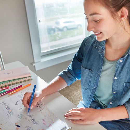Paper Mate® Flair canetas de feltro de colorir de ponta média (0,7 mm), tinta turquesa, caixa de 12. Tinta de água que não trespassa o papel para que a sua escrita permaneça intacta. Resiste a manchas e ao desvanecimento, para uma página bonita e limpa.