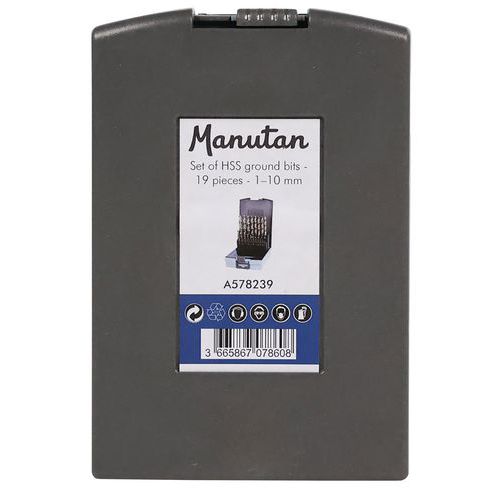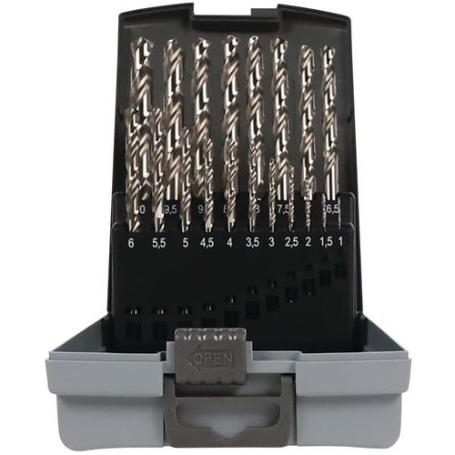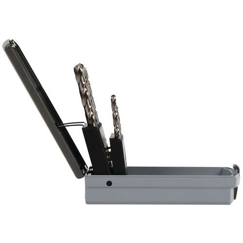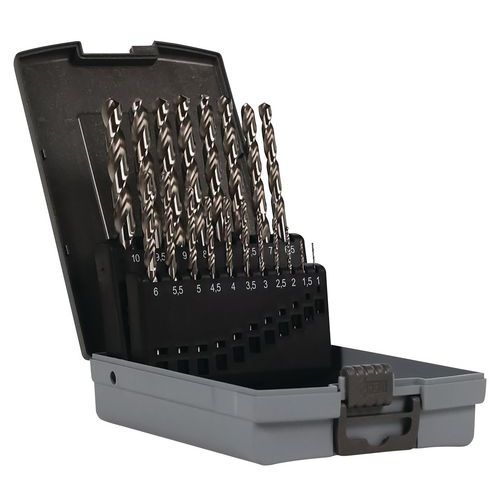 | Nome do artigo | Caixa de 19 brocas cilíndricas HSS talhadas por polimento, N.º de peças: 19, Utilização: Perfuração |