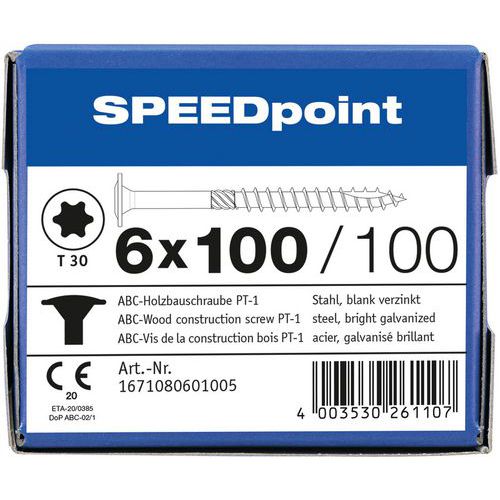 Caixa de 200 parafusos de cabeça em disco para madeira TX Ø 6 mm - SpeedPoint