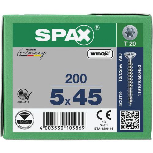 Caixa de 200 parafusos universais de cabeça escareada T-Star Plus TX Ø - Spax