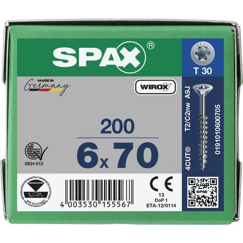 Caixa de 200 parafusos universais de cabeça escareada T-Star Plus TX Ø - Spax