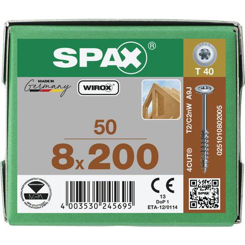 Caixa de 50 parafusos de cabeça em disco para madeira TX Ø 8 mm- Spax