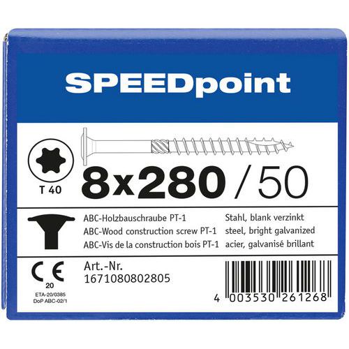 Caixa de 50 parafusos de cabeça em disco para madeira TX Ø 8 mm - SpeedPoint