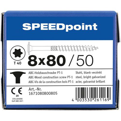 Caixa de 50 parafusos de cabeça em disco para madeira TX Ø 8 mm - SpeedPoint