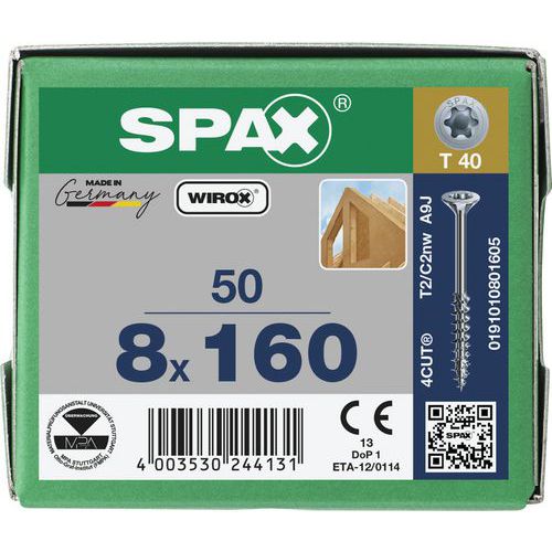 Caixa de 50 parafusos de cabeça escareada para madeira TX Ø 8 mm - Spax