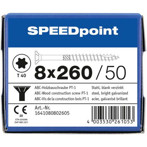Caixa de 50 parafusos de cabeça escareada para madeira TX Ø 8 mm - SpeedPoint