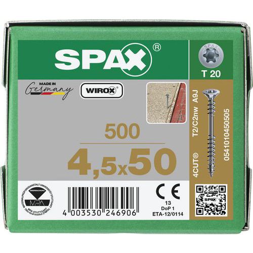 Caixa de 500 parafusos de instalação de cabeça escareada TX Ø 4,5 mm - Spax