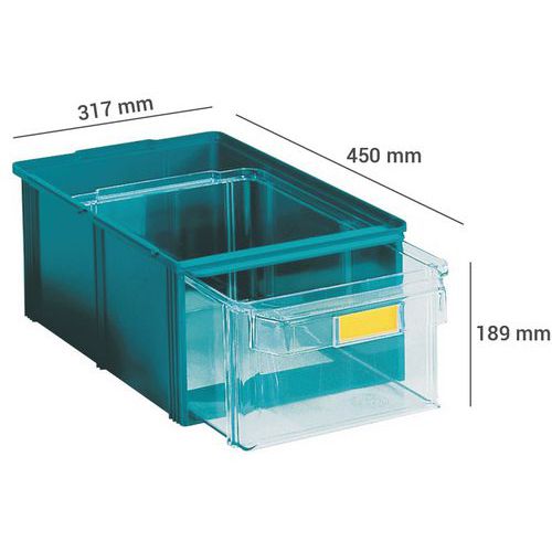 Caixa de armazenamento Rho Kappa, Capacidade: 21 L, Altura total: 189 mm, Largura total: 317 mm