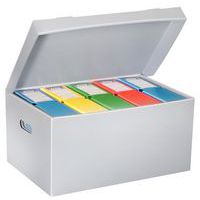- Caixa de arquivo Déco, com lombada de 100 mm de largura e tampa com dobradiça para um fecho seguro.
