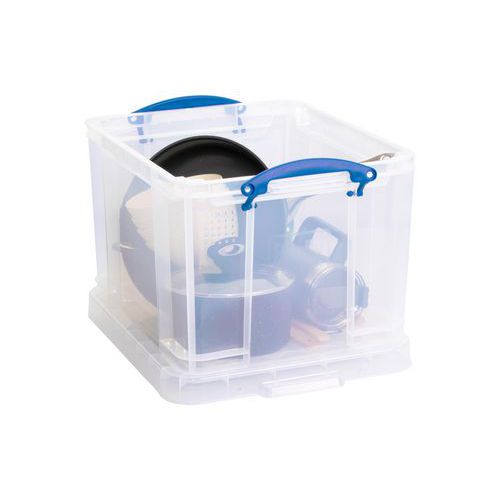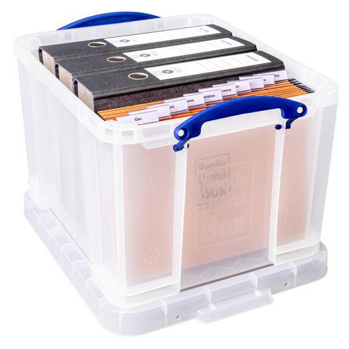 Identificação rápida do conteúdo graças à estrutura transparente. Reforço integral: grande resistência a cargas e esmagamento. Empilhável com ou sem tampa sobre caixas com as mesmas dimensões. Proteção do conteúdo contra poeiras e humidade. Transporte facilitado graças às pegas grandes. Zonas para etiquetas autocolantes. Fabricado no UK Carga máx. (kg) : 80 kg Garantia do cliente : 3 anos