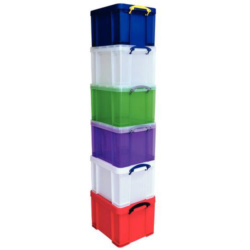 Confidencialidade e segurança garantidas graças à sua estrutura opaca. Totalmente reforçada para maior resistência à carga e à compressão. Empilhável com ou sem tampa entre caixas com as mesmas dimensões. proteção do conteúdo contra poeiras e humidade. Transporte facilitado graças às pegas grandes. Zonas para etiquetas autocolantes. Fabricado no UK Carga máx. (kg) : 100 Garantia do cliente : 3 anos