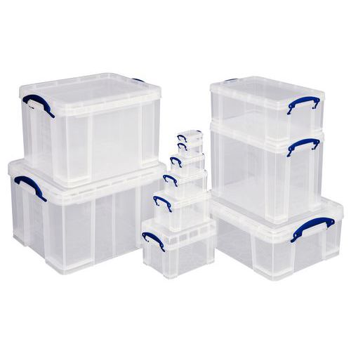 Identificação rápida do conteúdo graças à estrutura transparente. Totalmente reforçada para maior resistência à carga e à compressão. Empilhável com ou sem tampa entre caixas com as mesmas dimensões. Proteção do conteúdo contra poeiras e humidade. Transporte facilitado graças às pegas grandes. Zonas para etiquetas autocolantes. Fabricado no UK Carga máx. (kg) : 100 Garantia do cliente : 3 anos