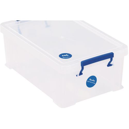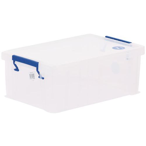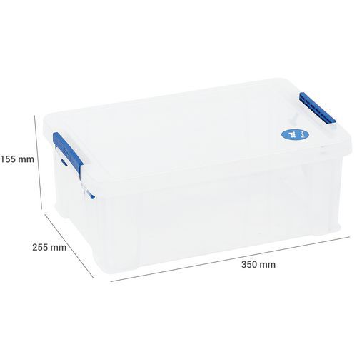 Caixa de arrumação robusta e extremamente estável. Prática: o transporte é simplificado graças às pegas. Identificação rápida dos objetos no interior da caixa graças à construção transparente.