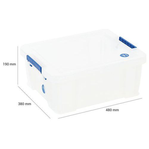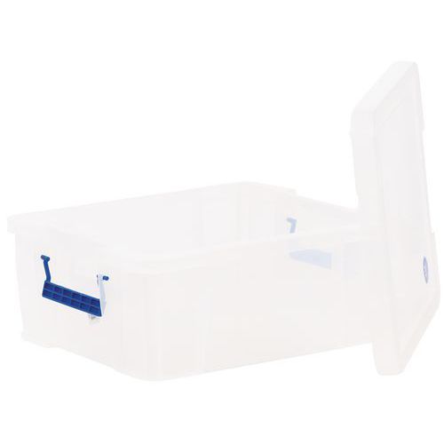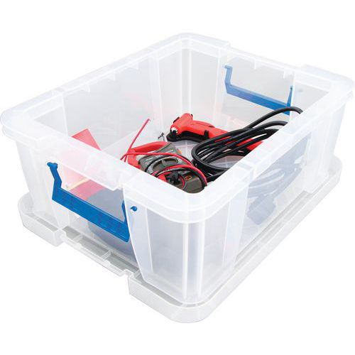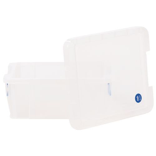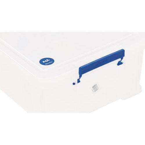 Caixa de arrumação robusta e extremamente estável. Prática: o transporte é simplificado graças às pegas. Identificação rápida dos objetos no interior da caixa graças à construção transparente.