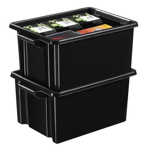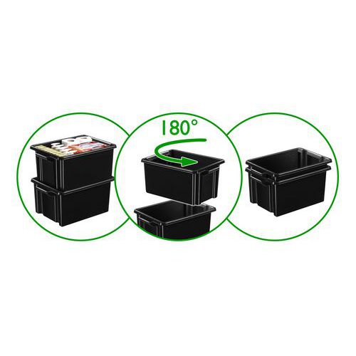 Caixa para armazenar e arquivar documentos ou artigos. Rebordo largo a toda a volta para garantir uma elevada robustez. As 2 pegas fortes permitem transportar facilmente a caixa. Sobreposição muito estável das caixas umas nas outras. Armazenamento por encaixe uma na outra por rotação simples de 180 ° quando a caixa está vazia.