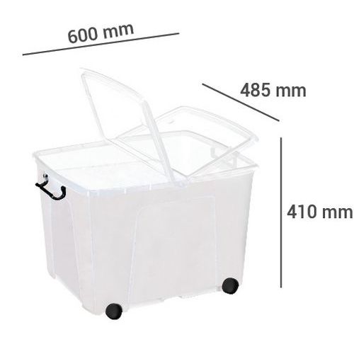 | Nome do artigo | Caixa de arrumação Strata – tampa de aba dupla – 75 L – com rodízios, Capacidade: 75 L, Altura total: 410 mm |