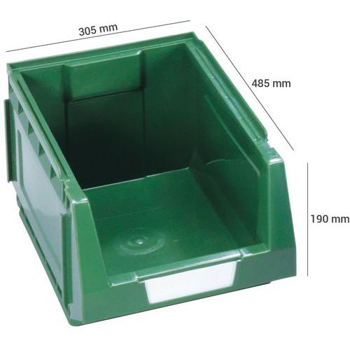 | Nome do artigo | Caixa de bico empilhável, Capacidade: 30 L, Material: Plástico, Comprimento total: 485 mm |