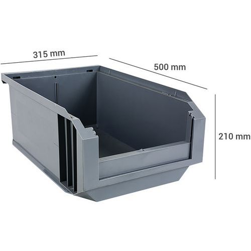 Grande robustez graças às suas duplas paredes e às suas nervuras de reforço. Caixa de bico European resistente aos choques, mesmo em caso de utilização intensiva. Identificação fácil através de porta-etiqueta largo. Fabricado na UE Garantia do cliente : 3 anos Carga máx. (kg) : 14 kg