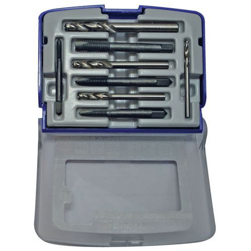 | Nome do artigo | Caixa de brocas HSS e roscas Gun – Tivoly, N.º de peças: 8, Material: Aço, Tipo de soporte: Plástico |