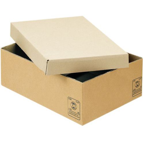 Boa resistência ao empilhamento. Caixa de cartão sem pala. Aderência ideal de fita adesiva. Resistência ao afastamento. Formato paletizável. Campos de aplicação: todos os setores, incluindo o setor automóvel