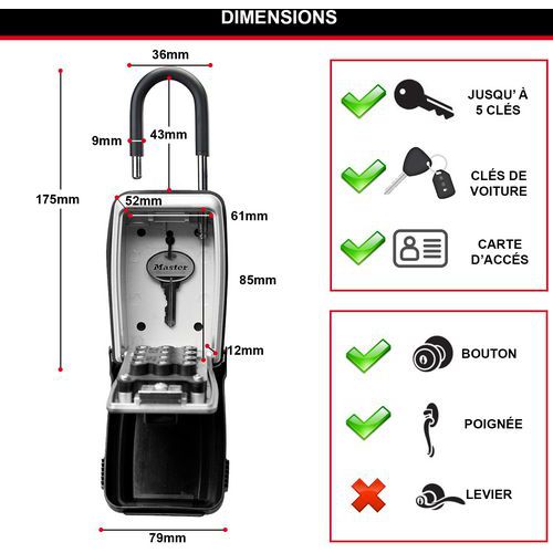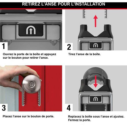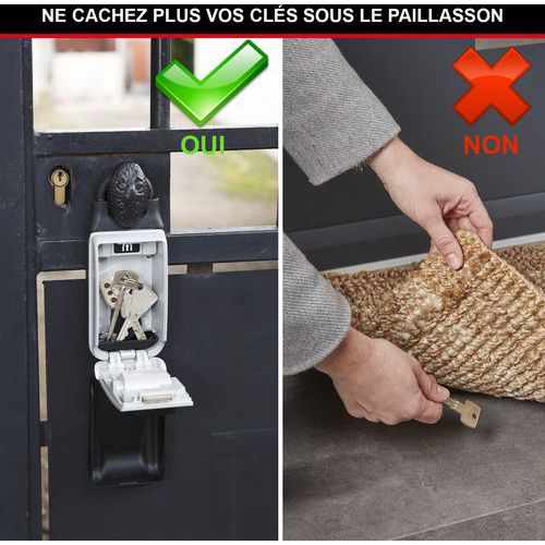 - A caixa de chaves não requer montagem na parede, pode ser fixada rápida e facilmente ao puxador da porta.