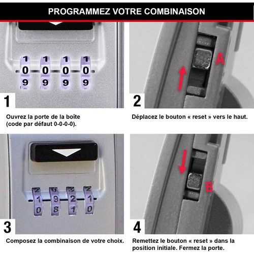 - Combinação programável de 4 números com roletes de grande dimensão (até 10 000 códigos disponíveis).