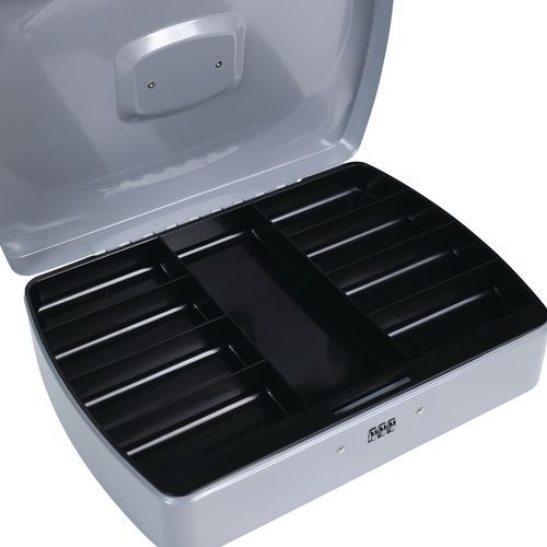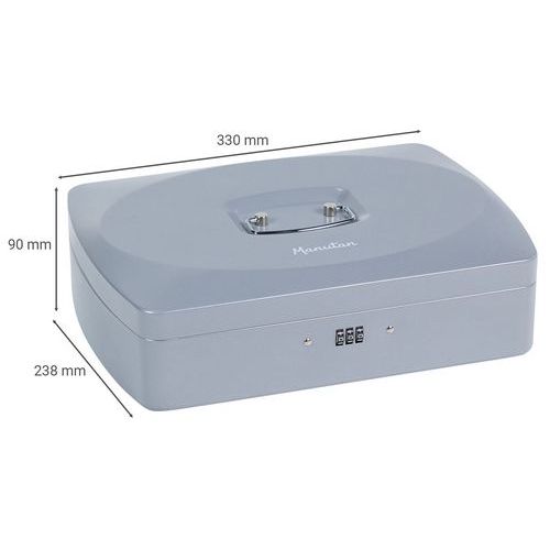 Caixa de dinheiro com fechadura com código – Manutan Expert Caixa de dinheiro com fechadura com código de segurança de 3 dígitos Pega de preensão metálica integrada na tampa. Este produto foi concebido para uma utilização profissional.