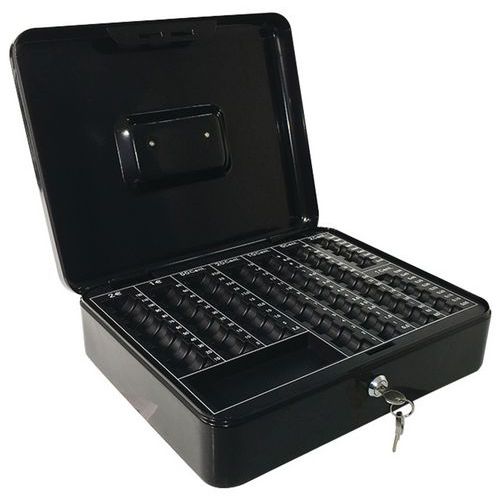 Caixa de dinheiro com moedeiro – com chave – Manutan Expert Caixa de dinheiro com moedeiro prático para arrumar as moedas. Prática com pega metálica integrada na tampa.