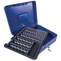 Caixa de dinheiro com moedeiro, Cores: Azul, Largura: 240 mm, Comprimentos: 300 mm, Altura: 90 mm