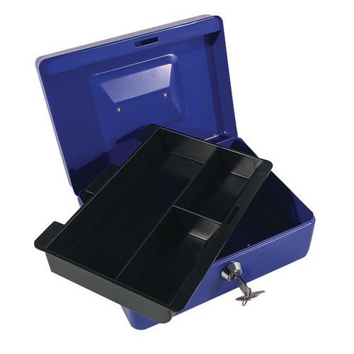 Caixa de dinheiro Eco – 3 compartimentos, Cores: Azul, Largura: 150 mm, Comprimentos: 200 mm, Altura: 85 mm