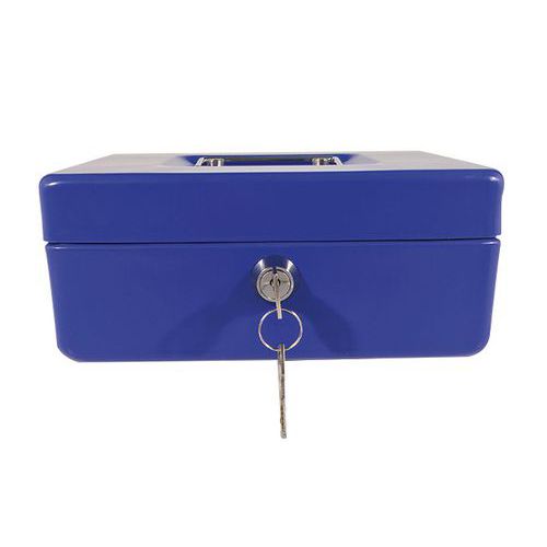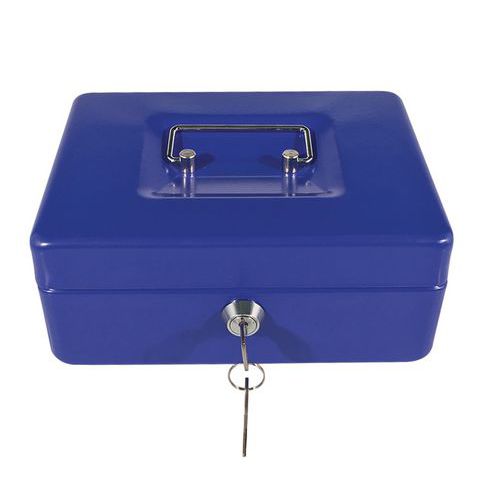 - Caixa de dinheiro em metal com fechadura.
