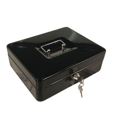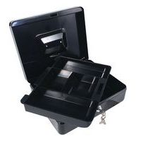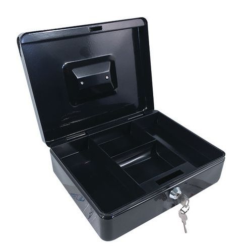 Caixa de dinheiro Eco – 4 compartimentos, Cores: Preto, Largura: 200 mm, Comprimentos: 250 mm, Altura: 85 mm