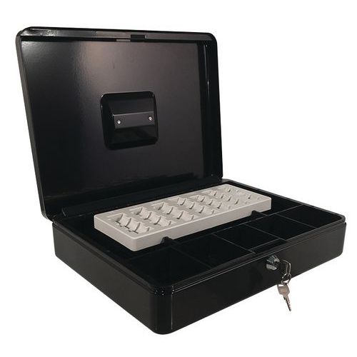 | Nome do artigo | Caixa de dinheiro Eco com moedeiro – 9 compartimentos, Cores: Preto, Largura: 285 mm, Comprimentos: 370 mm |