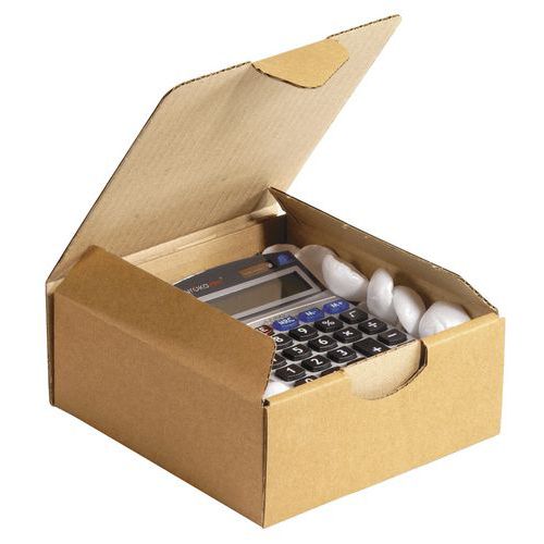 Caixa de expedição em cartão kraft sólido. Fácil de abrir e fechar com lingueta. Envie todos os seus produtos pequenos e frágeis pelo correio!