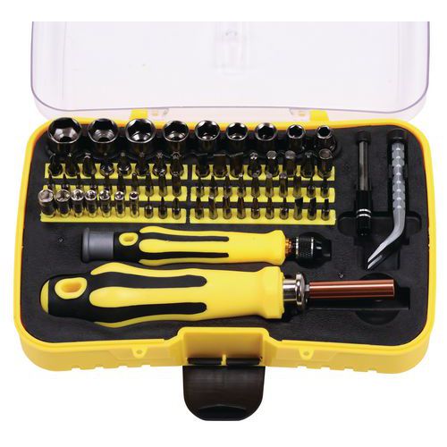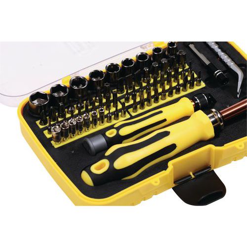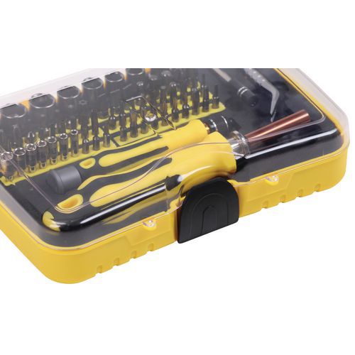 | Nome do artigo | Caixa de ferramentas magnéticas de precisão, Recesso de parafuso: Soquete sextavado, N.º de peças: 70 |