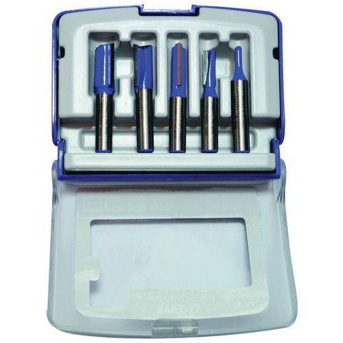 | Nome do artigo | Caixa de fresas para ranhuras de carboneto – Tivoly, N.º de peças: 5, Material: Aço |