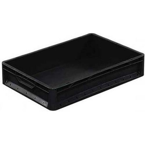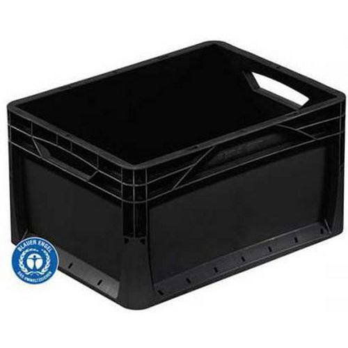 - Caixa de norma europeia preta em polipropileno reciclado.