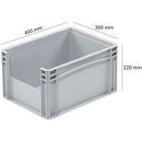 | Nome do artigo | Caixa de norma europeia com abertura frontal – Comprimento de 400 mm – 21 L, Capacidade: 21 L |