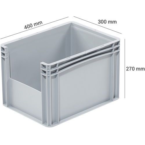 | Nome do artigo | Caixa de norma europeia com abertura frontal – Comprimento de 400 mm – 21 L, Capacidade: 26 L |