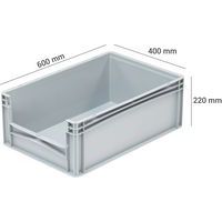 | Nome do artigo | Caixa de norma europeia com abertura frontal – Comprimento de 600 mm – 44 a 64 L, Capacidade: 44 L |