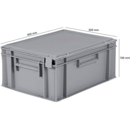 Caixa de norma europeia com tampa– 400 mm de comprimento – 10 a 30 L, Capacidade: 15 L, Empilhável: sim